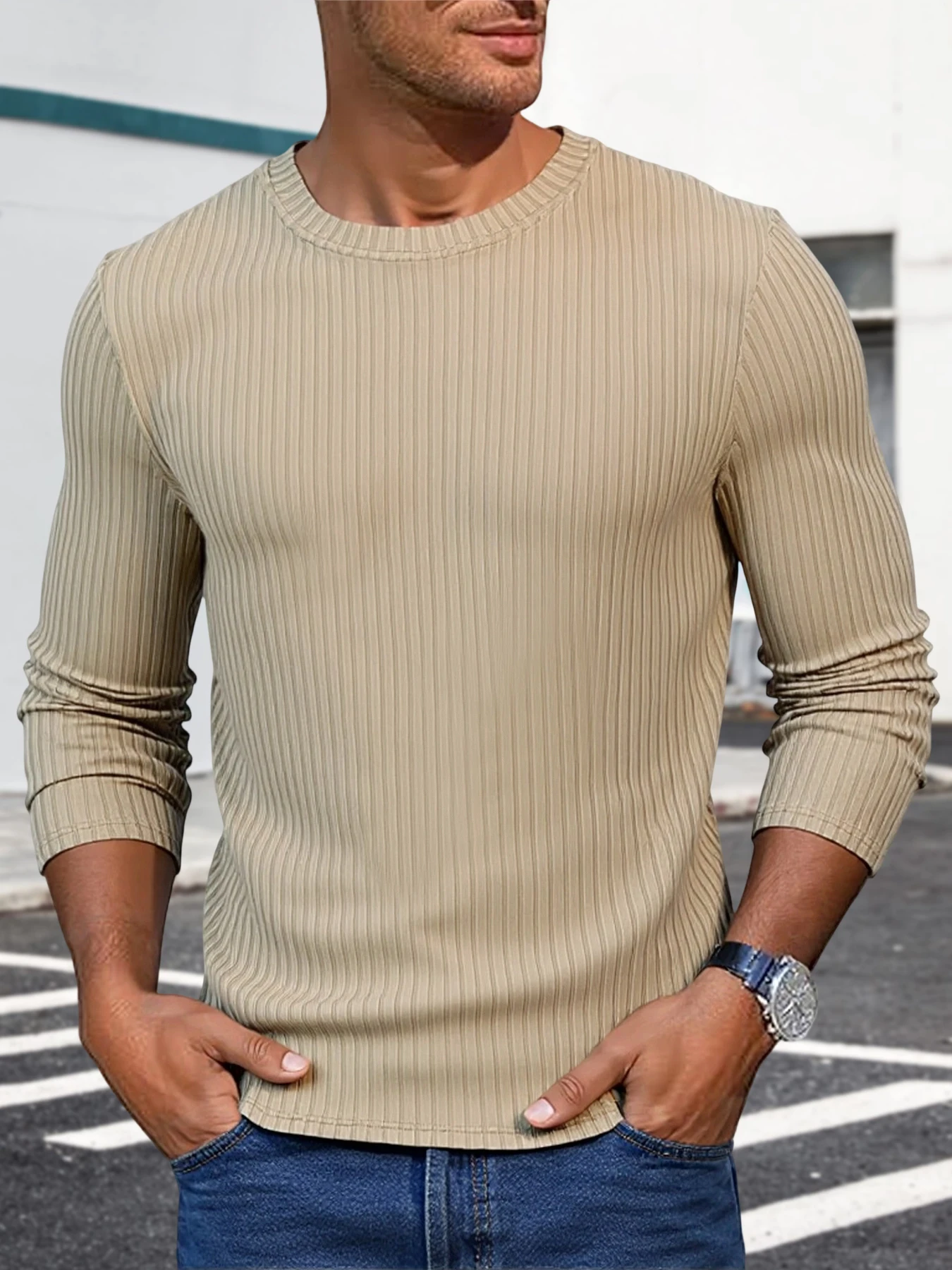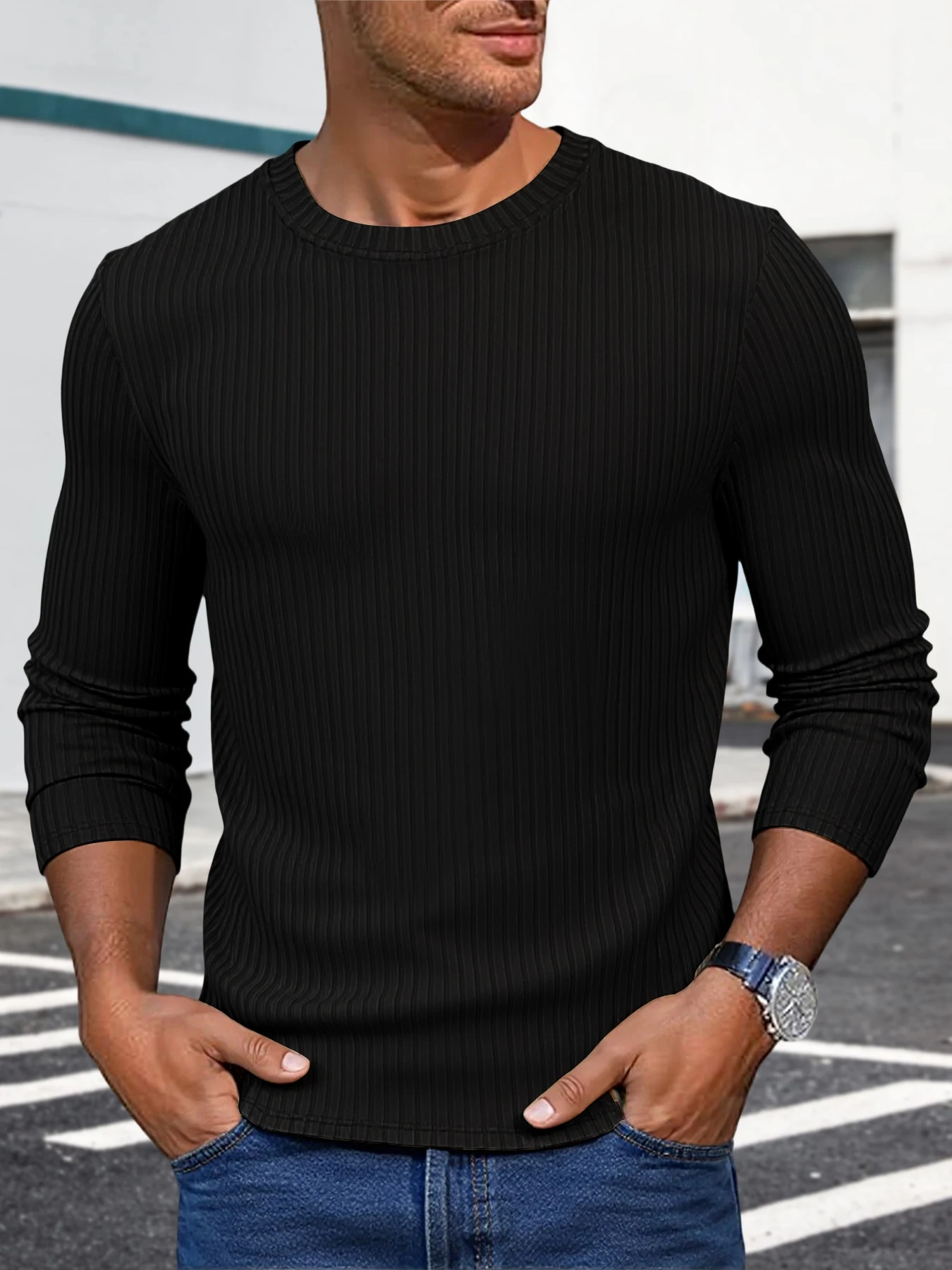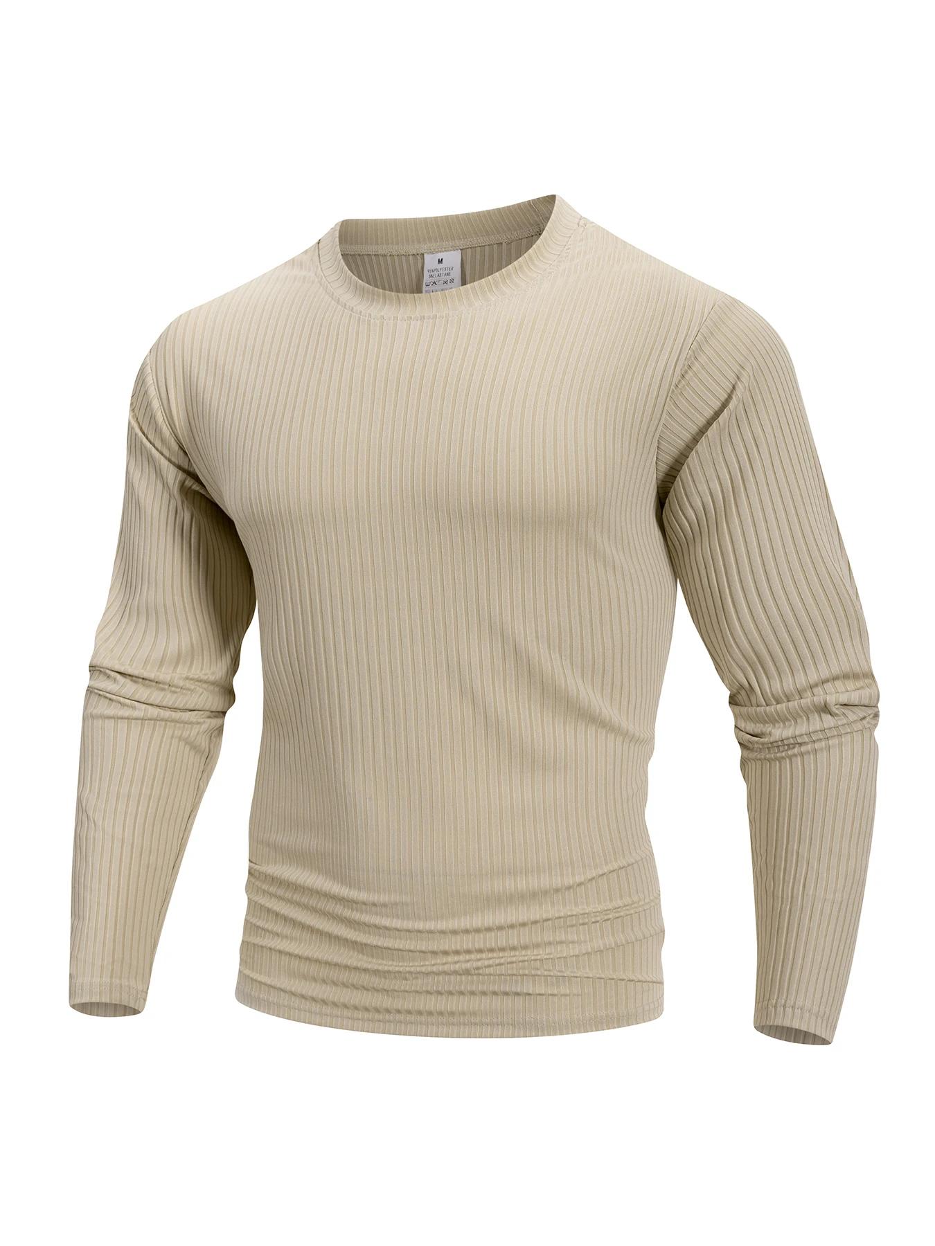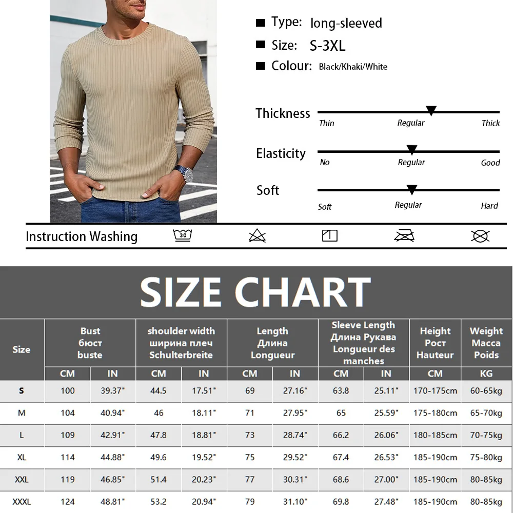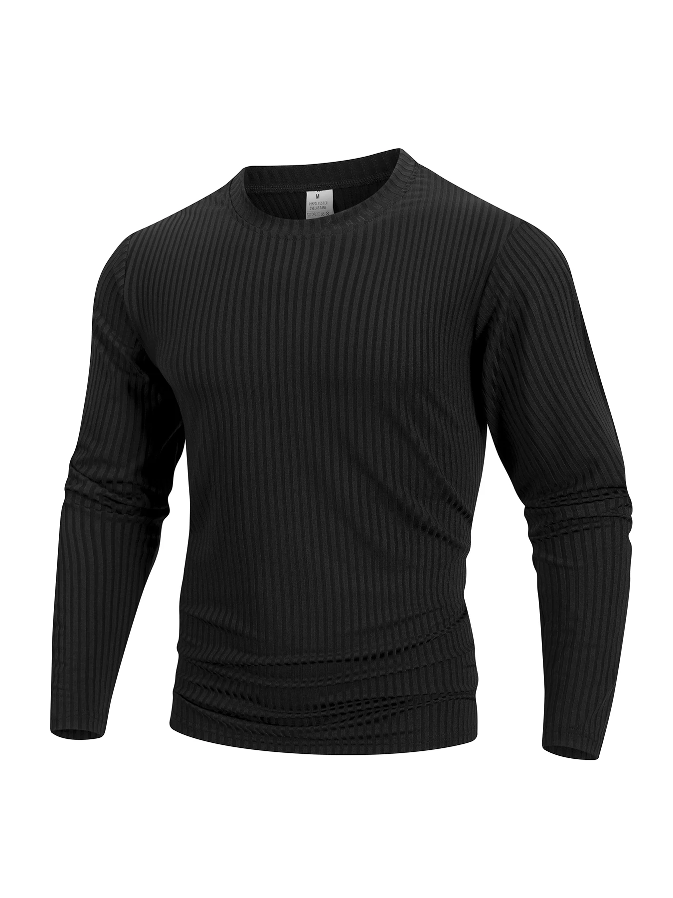 Spring Summer Men's Crew Neck Long Sleeve Top Fitness High Stretch Base Shirt Solid Color Casual Long Sleeve Pullover Clothing